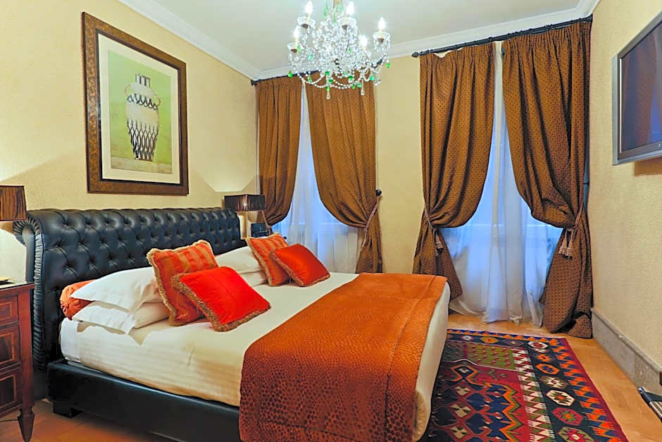 Spacious, air-conditioned room with a seating area, four-poster bed, flat-screen TV, iPod docking station, tea/coffee maker and a marble bathroom with a spa bath. Offers a view over Via degli Ibernesi, and some rooms include a log fire.